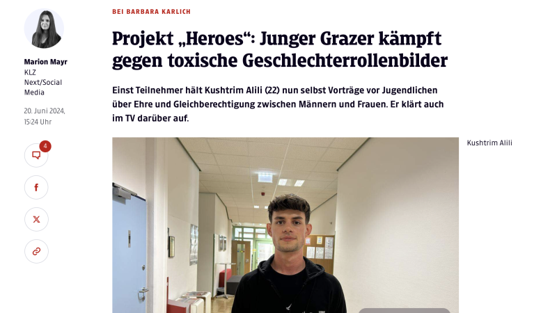 Das Präventivprojekt „Heroes“ arbeitet mit jungen Männern aus ehrkulturellen Milieus, also wo die Ehre der Familie einen sehr hohen Stellenwert hat. Man spricht über toxische Geschlechterrollen und die Gleichberechtigung von Männern und Frauen.